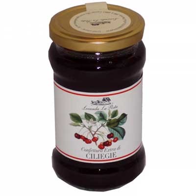 Vaso in vetro da 350 g. di confettura extra di ciliegie.