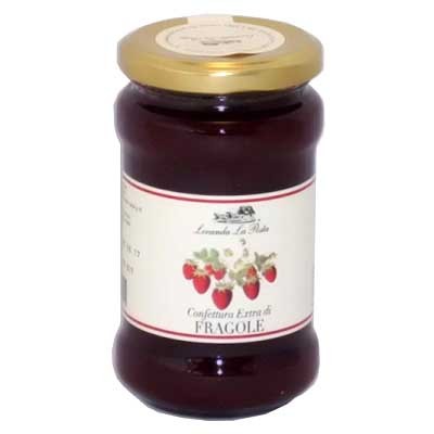 Vaso in vetro da 350 g. di confettura extra di fragole.