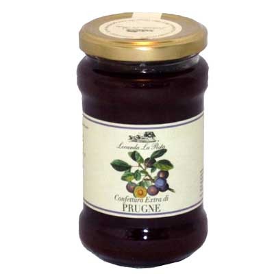 Vaso in vetro da 350 g. di confettura extra di prugne.