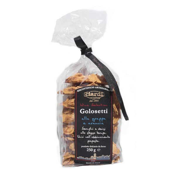 I Golosetti Grappa e Arancia 250 gr Ciardi sono un prodotto dolciario da forno in pratico sacchetto trasparente da 250 grammi.