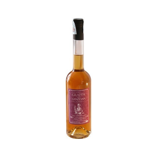 Le molteplici proprietà terapeutiche del liquore di genziana vengono arricchite dalle soavi e robuste note di grappe.