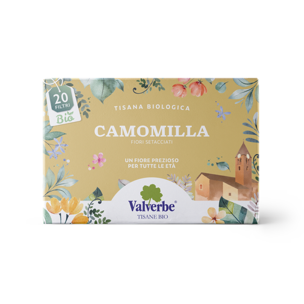 Tutte le classiche proprietà della Camomilla. Calmante, digestiva, adatta ad adulti e bambini.