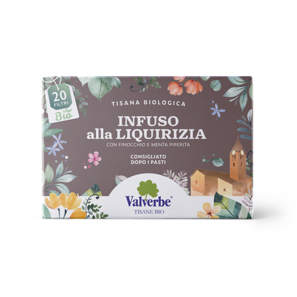 Ingredienti: Liquirizia (Glycyrrhiza glabra L.) radici 40%, Finocchio (Foeniculum vulgare Miller) frutti 40%*, Menta Piperita (Mentha x piperita L.) foglie 20%*[*BIO]
