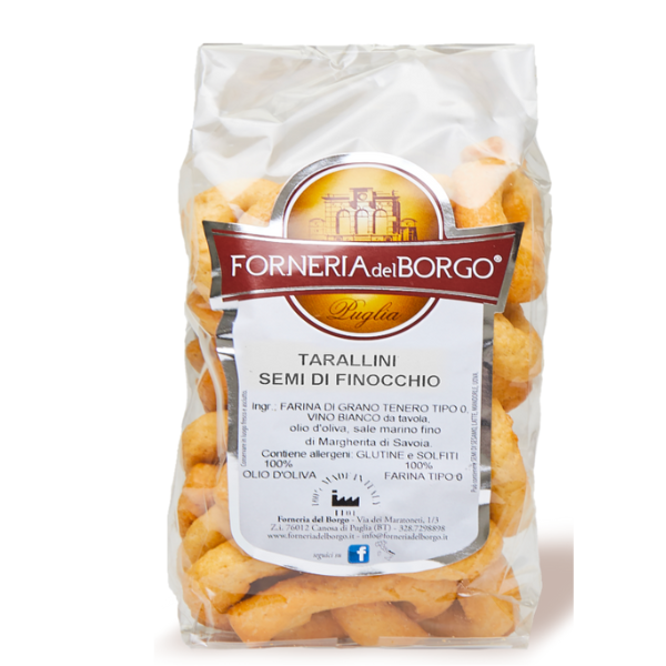 Sacchetto da 210 grammi di Taralli Semi di Finocchio Pugliesi - Ricetta Classica